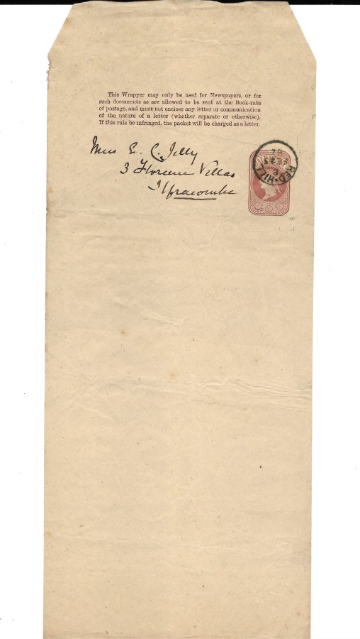 GREAT BRITAIN – 1882, PRE-PAID HALF PENNY NEWSPAPER WRAPPER, USED