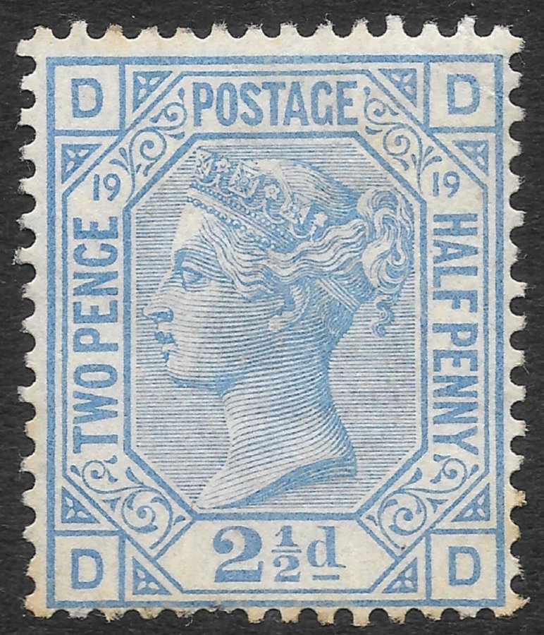 GREAT BRITAIN – 1873, 2½d BLUE PLATE 19 POOR BOTTOM PERF CLEAN FILLER, SG 142, M/MINT, CAT £425