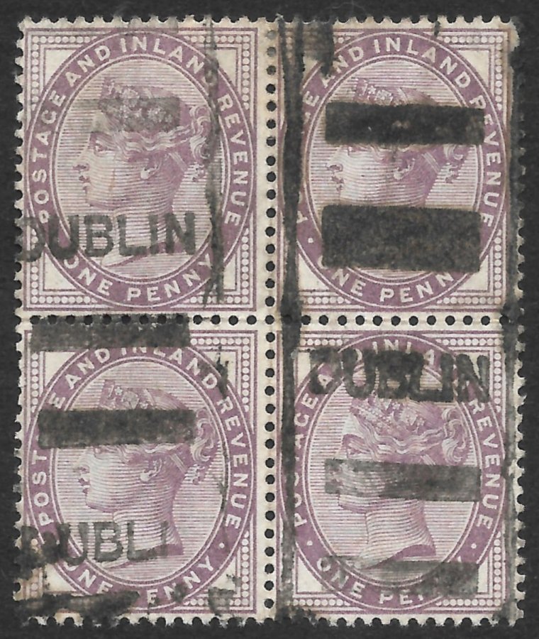 GREAT BRITAIN – 1881, 1d LILAC IN BLOCK OF 4 WITH DUBLIN LINED CANCEL, SG 172, G/F/USED