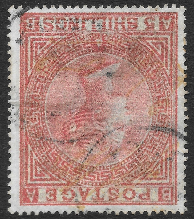 GREAT BRITAIN – 1882, 5/- ROSE PLATE 4 WATERMARK INV (NOT LISTED) PERF 14½ x 14½ FORGERY, SG 134wi, F/USED