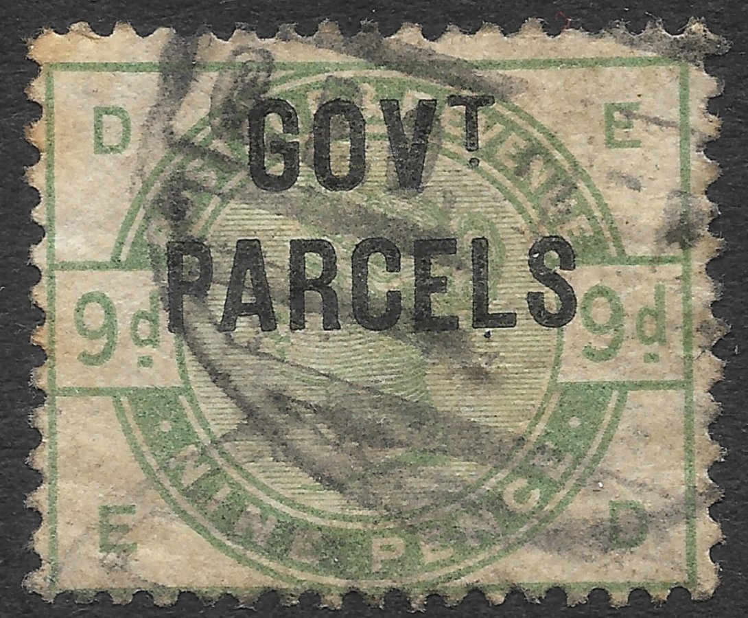 GREAT BRITAIN – 1883, 9d GREEN GOVT PARCELS, FOX SPOT, FILLER, SG O63, G/USED, CAT £550
