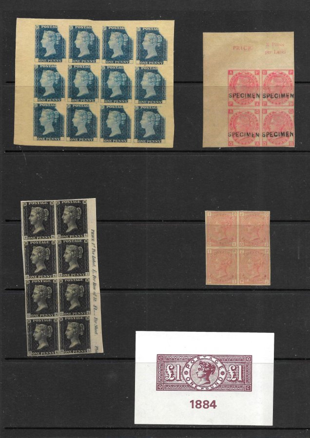 GREAT BRITAIN – QUEEN VICTORIA REPRODUCTIONS OF 1d BLACK PART SHEET ETC.